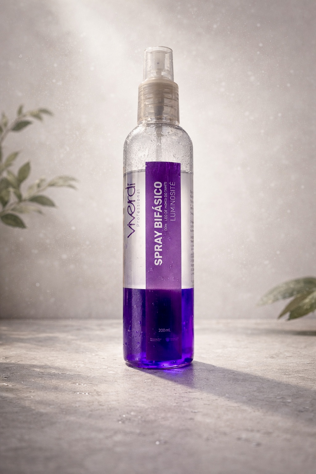 Após o uso do Shampoo e Condicionador Viverdí, retire o excesso de umidade com uma toalha e borrife o Spray Bifásico Luminosité da raiz às pontas e penteie. Finalize como desejar.